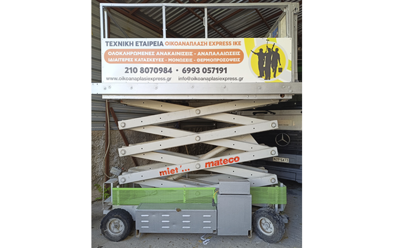 Η εταιρεία μας διαθέτει φορητή εξέδρα εργασίας 10 μέτρων για να μπορεί να ανταποκρίνεται οικονομικότερα και ταχύτατα σε οποιαδήποτε εξωτερική εργασία πρόσοψης κτιρίου.